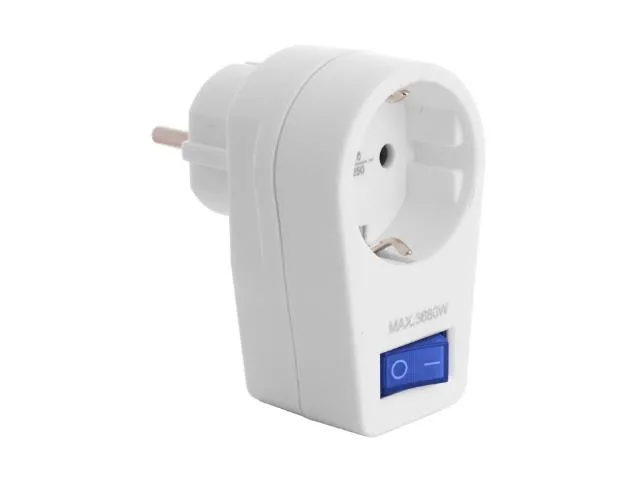 Adaptador 2P + E, 16A 250V ~. Cor branca. Com interruptor de luz