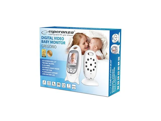O baby monitor Esperanza GREGORIO ajuda você a cuidar com excelência do seu bebê, permitindo que você se mova livremente pela casa e realize outras tarefas. O dispositivo tem muitas funções úteis, como monitoramento noturno, interfone bidirecional. Graças a eles, você não apenas verificará o que está acontecendo com seu filho, mas também acalmará a criança com sua voz ou tocará uma canção de ninar remotamente.