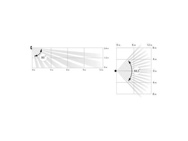 Detecção: Intervalo 12 m / H: 88.5º / V: 80º